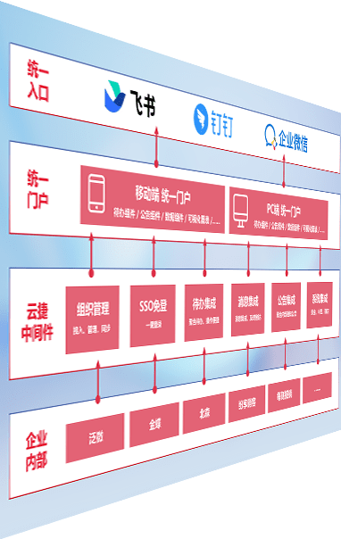 对协作平台提供支持服务,,,支持企业应用与协作平台对接,,包含组织同步、、、消息集成、、、待办集成等。。支持目前主流的协作平台:钉钉、、企微和飞书。。。